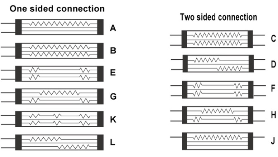 不同的燈絲結(jié)構(gòu)和出線(xiàn)方式,增強(qiáng)了區(qū)域選擇加熱和電路連接的靈活性